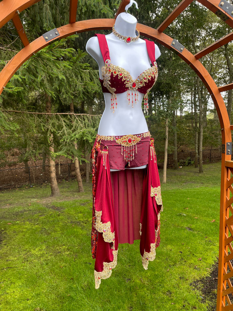 Burgundy Princess Jasmine Inspired Cosplay Dance Costume